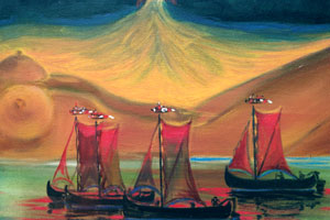Triptychon von Eduardas Jonusas, wohnhaft in Nidden: Die Legende von Neringa